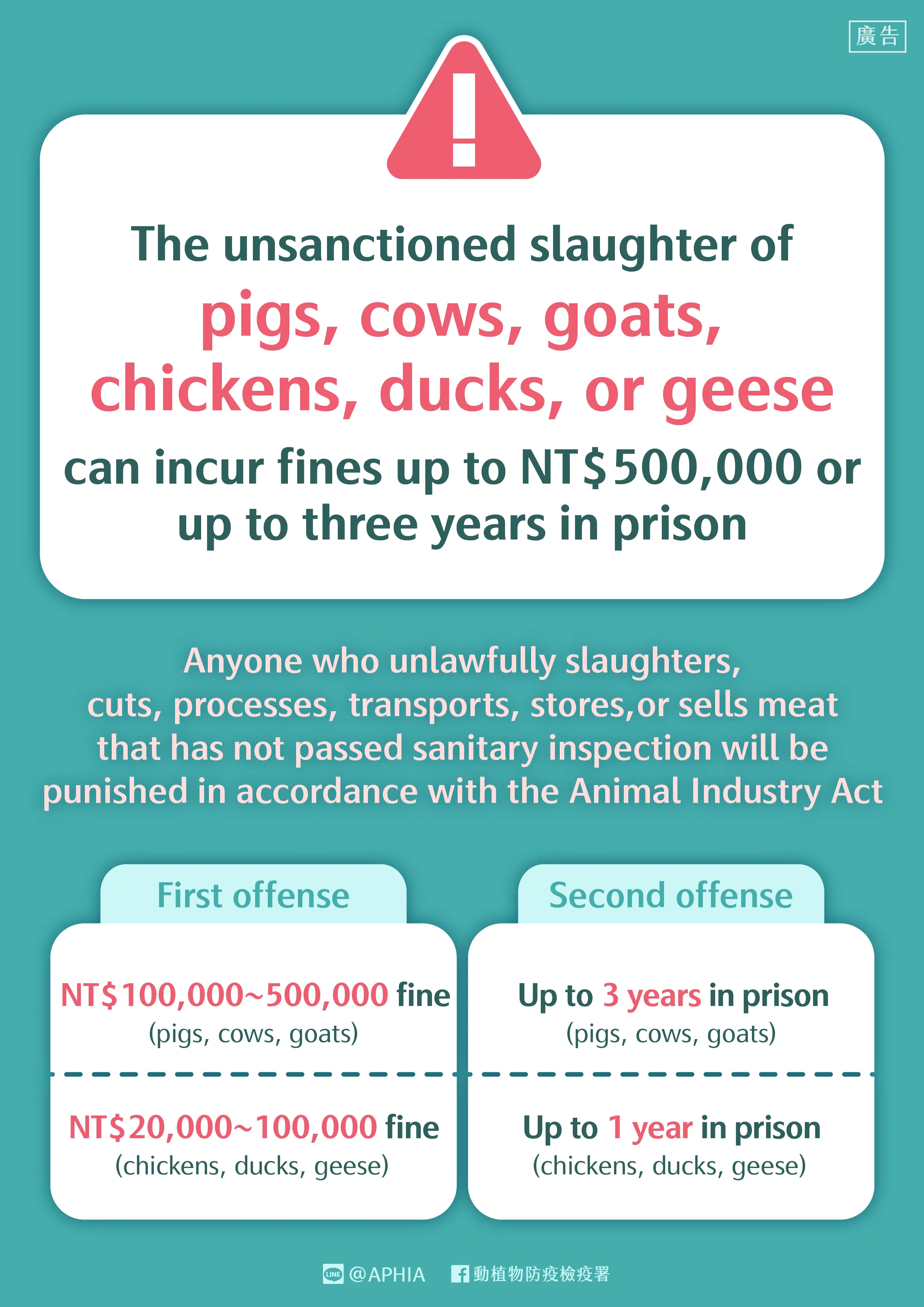 多國語言版 - (農業部)禁止從事違法屠宰行為
